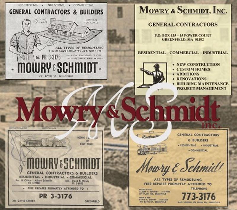 Mowry & Schmidt was founded by David R. Mowry and Albert P. Schmidt in Greenfield, MA in 1947. Mowry & Schmidt quickly grew to become one of Greenfield’s premier, most trusted privately owned construction companies in the area. A long list of commercial, industrial and residential customers was established. Many individual customers and businesses became repeat customers; all enjoying both the dependable service and the high quality construction that Mowry & Schmidt worked to achieve.